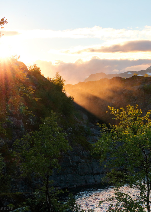 Soldalen börjar med en vacker vandring på ca 3 km enkel väg. Turen börjar i den drömska fjällbjörkskogen och når sitt mål uppe på kalfjället. Här har ni vidunderlig utsikt över Stora Sjöfallet, Ahkkájaure och fjällvärlden.